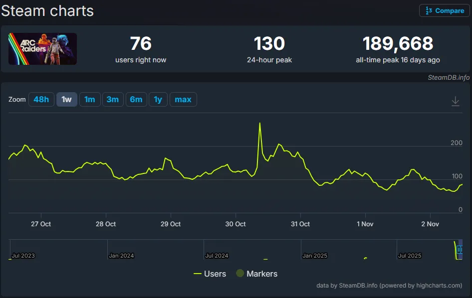 ARC Raiders alcanzó un pico histórico de 189.668 jugadores concurrentes.