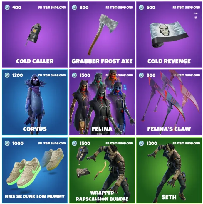A ellos se suman los personajes Malcore y Shiver, el Meownstrosity Bundle con el skin Phantom Meowscles, el pico Fishbone Cleaver y el envoltorio Furrocious Shadow. También están disponibles los paquetes Concept of Fear, con Sinister Glare y Undying Sorrow, y una selección de aspectos clásicos como Grisabella, Order Remnant, Queen of Hearts, Seth, Straw Ops y Growler.