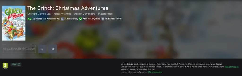 Cierra la lista The Grinch: Christmas Adventures, una propuesta más ligera y festiva que expande la oferta familiar del servicio. Este título de plataformas en 2D inspirado en el clásico navideño también está disponible en Game Pass Ultimate y PC, ideal para quienes buscan una experiencia accesible y colorida durante las fiestas.