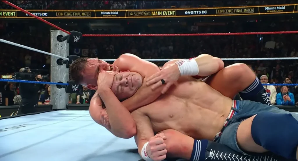 Desde el inicio, el duelo fue planteado como un choque de generaciones. Cena intentó imponer su estilo clásico, recurriendo a sus movimientos emblemáticos y a su fortaleza física. El momento más recordado llegó cuando logró aplicar un Attitude Adjustment sobre la mesa de comentaristas, desatando una ovación masiva y despertando la ilusión de una última hazaña.