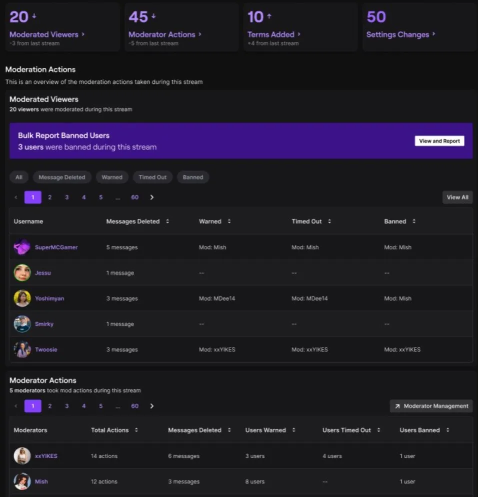 Twitch ha lanzado oficialmente Moderation Analytics, un nuevo panel que permite a los creadores y administradores de canales analizar y comprender mejor la actividad de moderación dentro de sus comunidades.