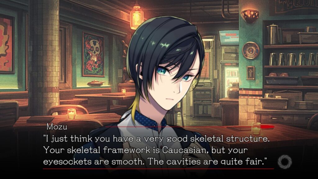 En el plano social, Crow sorprende por su timidez y su vulnerabilidad, lo que crea un contraste encantador con su imagen de “hacker del bajo mundo”. A lo largo del juego, fue un personaje que se ganó fácilmente mi cariño por lo adorable que resulta en su trato personal. Y su ruta logra adentrarse en su pasado, permitiendo a los lectores conocerlo mejor.