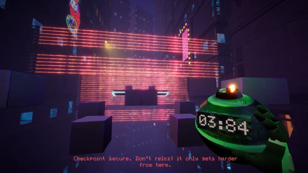 Ticking Together no pierde tiempo en explicaciones largas ni en introducciones suaves. Desde el primer segundo deja clara su propuesta: una bomba, un contador implacable y jugadores obligados a moverse, saltar y cooperar bajo presión constante. El resultado es una experiencia que se siente como una versión cyberpunk del clásico “hot potato”, combinada con la ansiedad de recibir una llamada urgente de tu jefe… pero multiplicada por risas, gritos y explosiones.