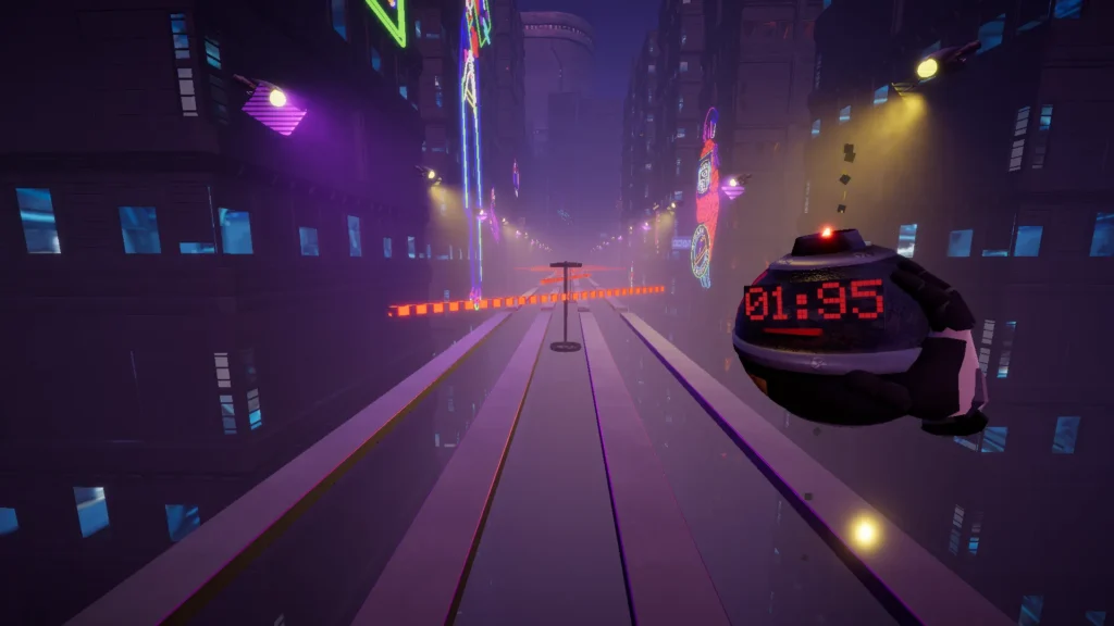 A nivel visual, Ticking Together apuesta por una estética futurista marcada por colores neón, escenarios limpios y un diseño que acompaña perfectamente el ritmo acelerado del gameplay. Todo está diseñado para garantizar que la información sea comprensible incluso en medio del caos, lo cual es esencial cuando cada segundo cuenta.
