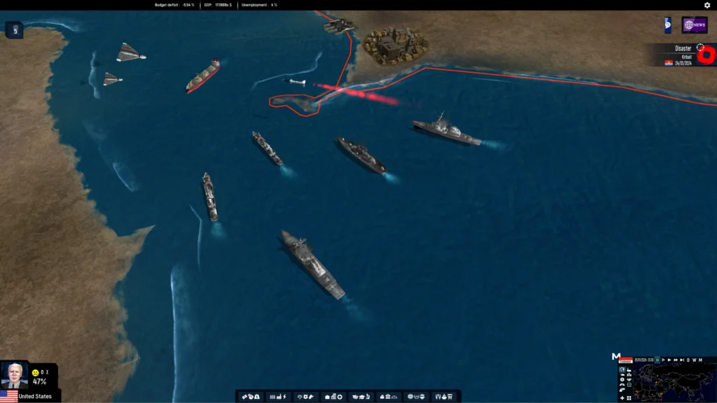 Geopolitical Simulator 5 (GPS5) llega como la entrega más ambiciosa de la franquicia, ofreciendo una recreación integral del mundo actual con una profundidad inédita en áreas como economía, política, defensa, energía, medio ambiente, transporte, finanzas y sociedades civiles. El título representa a todos los países del planeta y a miles de corporaciones multinacionales mediante sistemas complejos que calculan relaciones, cambios y eventos en tiempo real, creando un entorno donde cada decisión puede alterar el equilibrio global.
